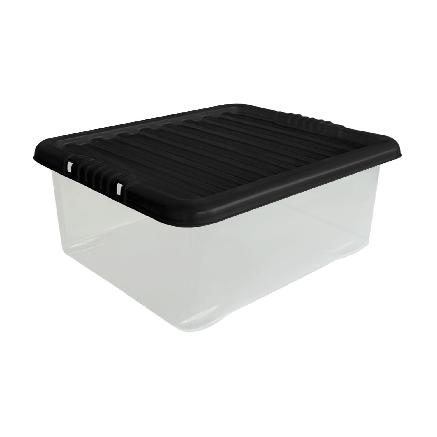Introducing our Plastic 28 Litre Box with Black Lid, a spacious and versatile storage solution...